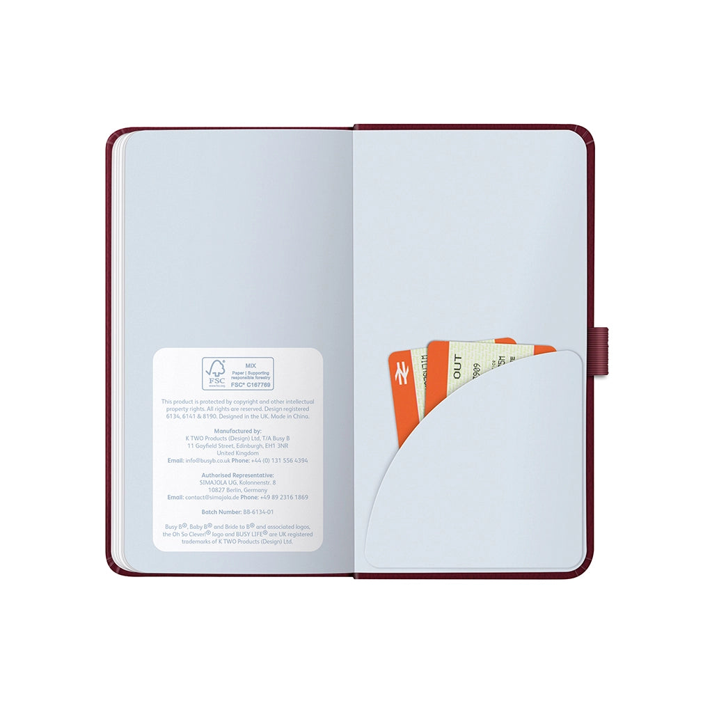 Tuck important documents into the handy back pocket for easy access. Address pages at the front allow you to note down important contact details. The elastic closure and pen holder keep everything secure and tidy on the go.
