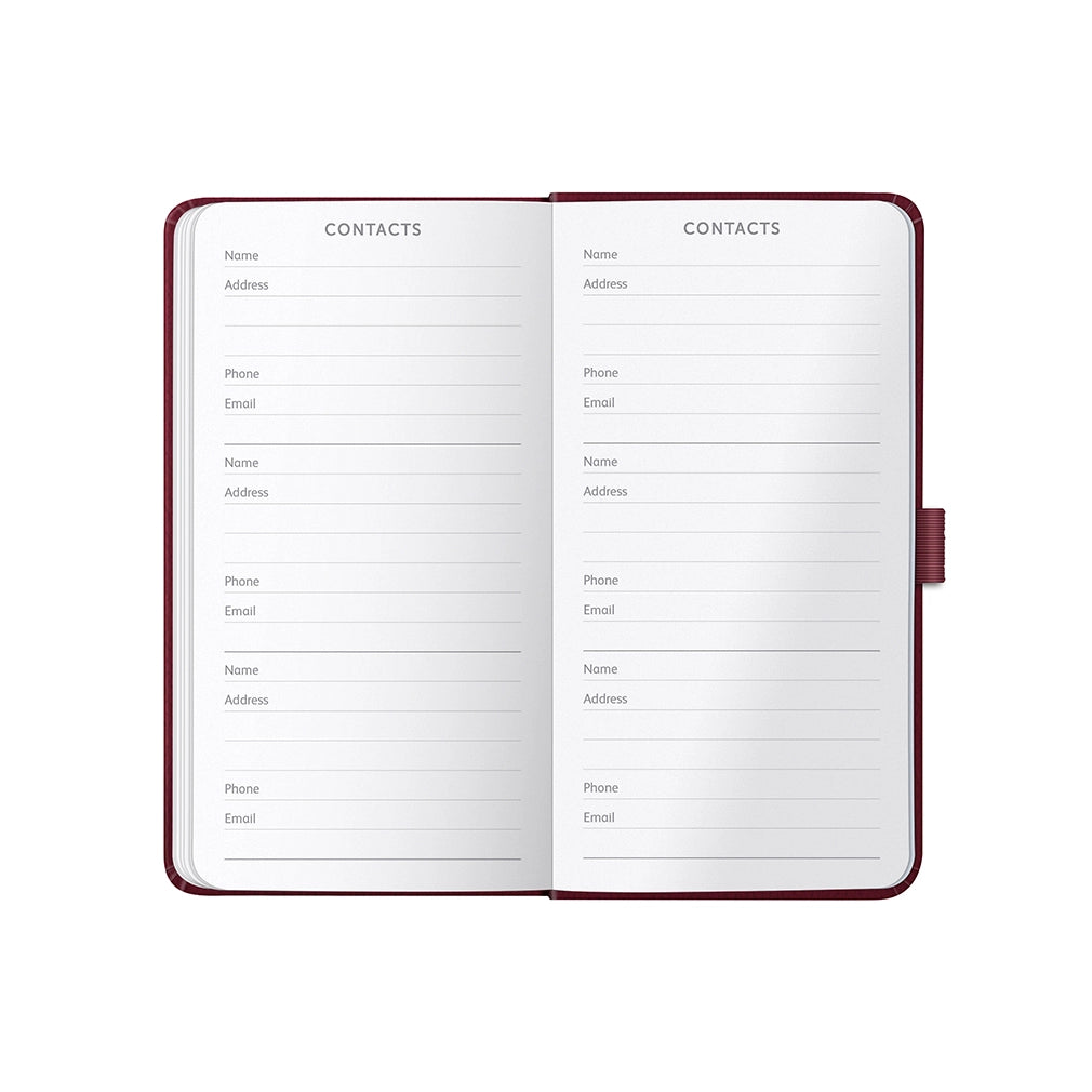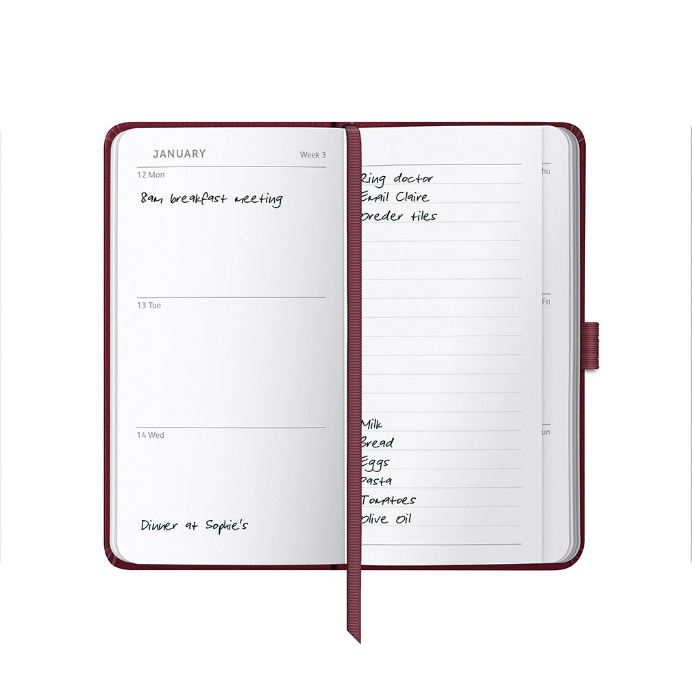 With a beautiful faux leather burgundy cover and gold detailing, the diary runs from January to December 2026.