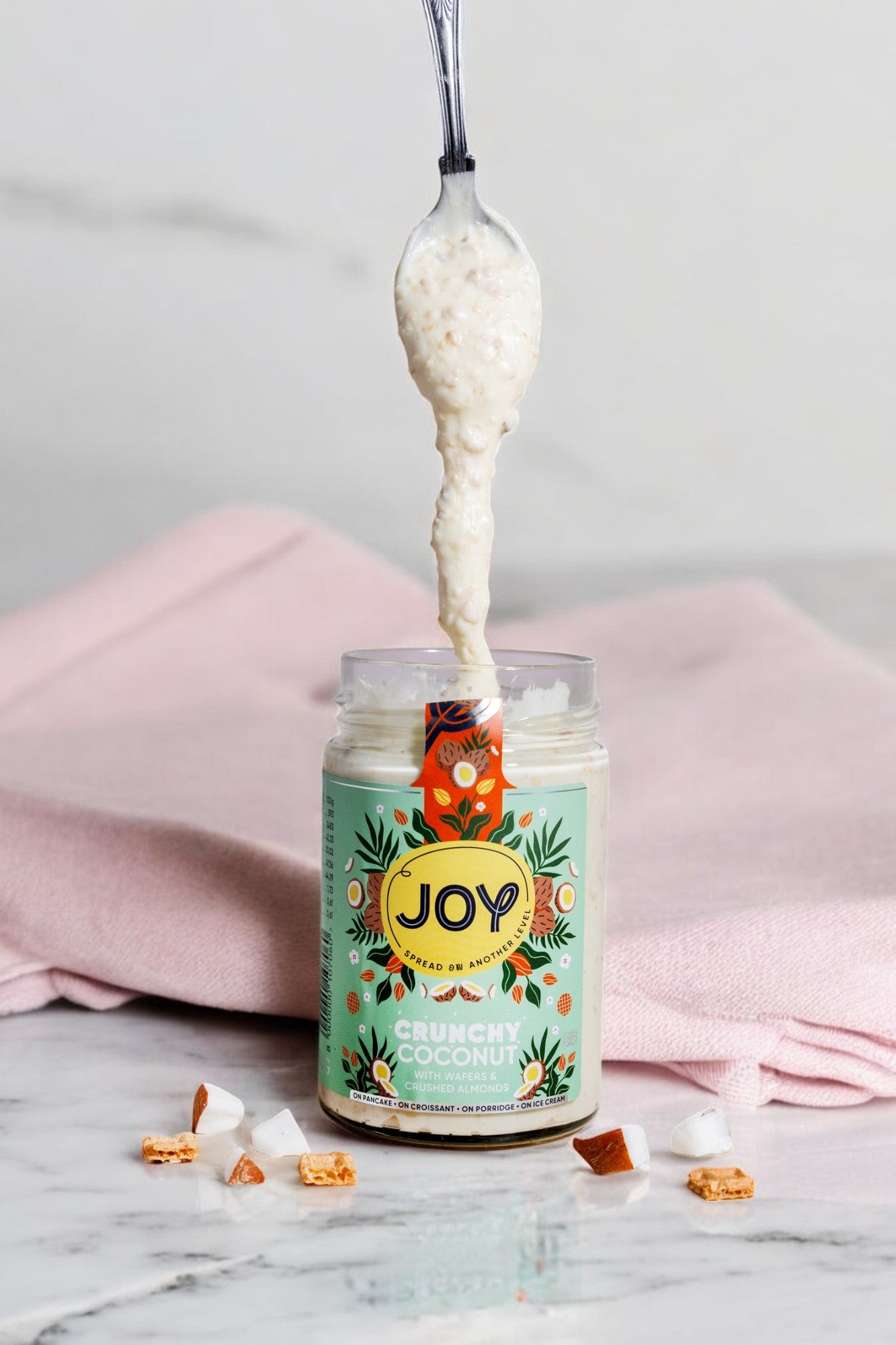 Spoon it, spread it or drizzle it - it's the delicious Crunchy Coconut Spread with wafers and crushed almonds from Joy Spread.