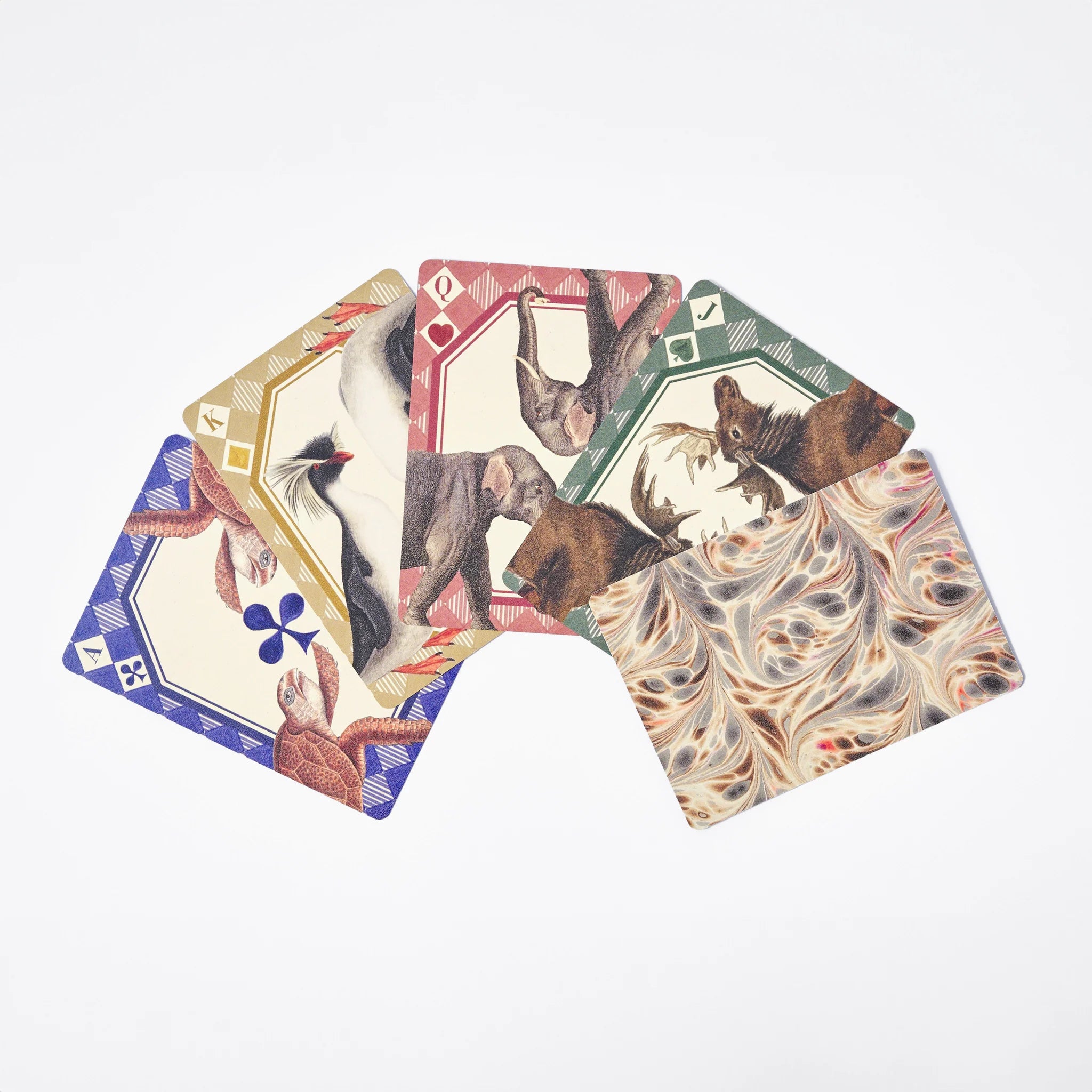 This Single Deck of 52 Playing Cards features incredible vintage illustrations of animals of the natural world compiled from antique books. Roomytown's design team in Bath, UK have hand picked the most captivating illustrations to create this unique Playing Card deck with each card individually designed. Includes standard 52-card deck plus 2 jokers. Packaged in a stylish portable pull-drawer box, it makes an ideal gift.