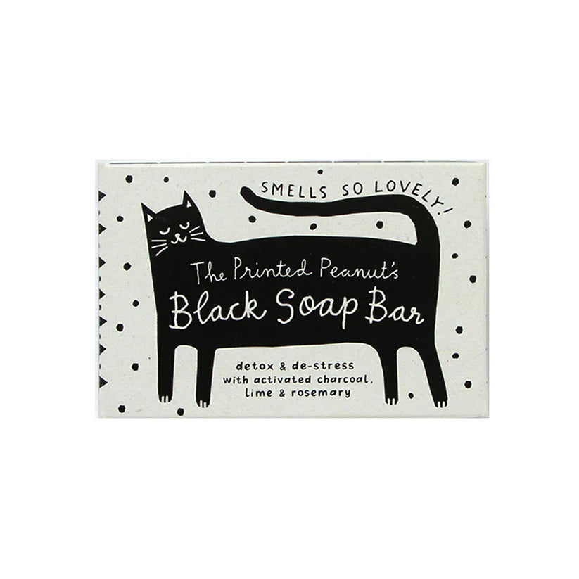 The Printed Peanut's black cat pure black charcoal soap bar made with rosemary and lime essential oils to restore balance to tired skin. Detox and de-stress with this all natural activated charcoal soap.