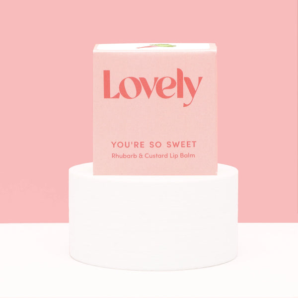 A delicious creamy lip balm by Lovely Skincare. Formulated with beeswax and jojoba oil for extra hydrating power and finished with a sweet rhubarb and custard flavour.