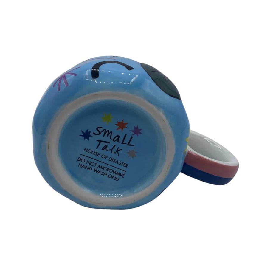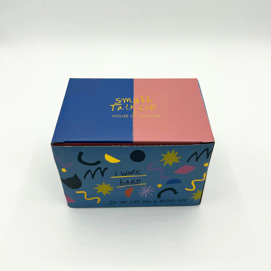 Rise and shine caffeine-lovers! Meet the new mug in town, the “Cat” mug from House of Disaster's Small Talk range. This quirky little mug is crafted with a handmade battered feel - the wonkiness is all a part of the charm! Featuring an all-over playful print print, with a 3D cat face, this mug holds a secret message on the inside. This little note reads “I work hard…so my cat has a better life”
