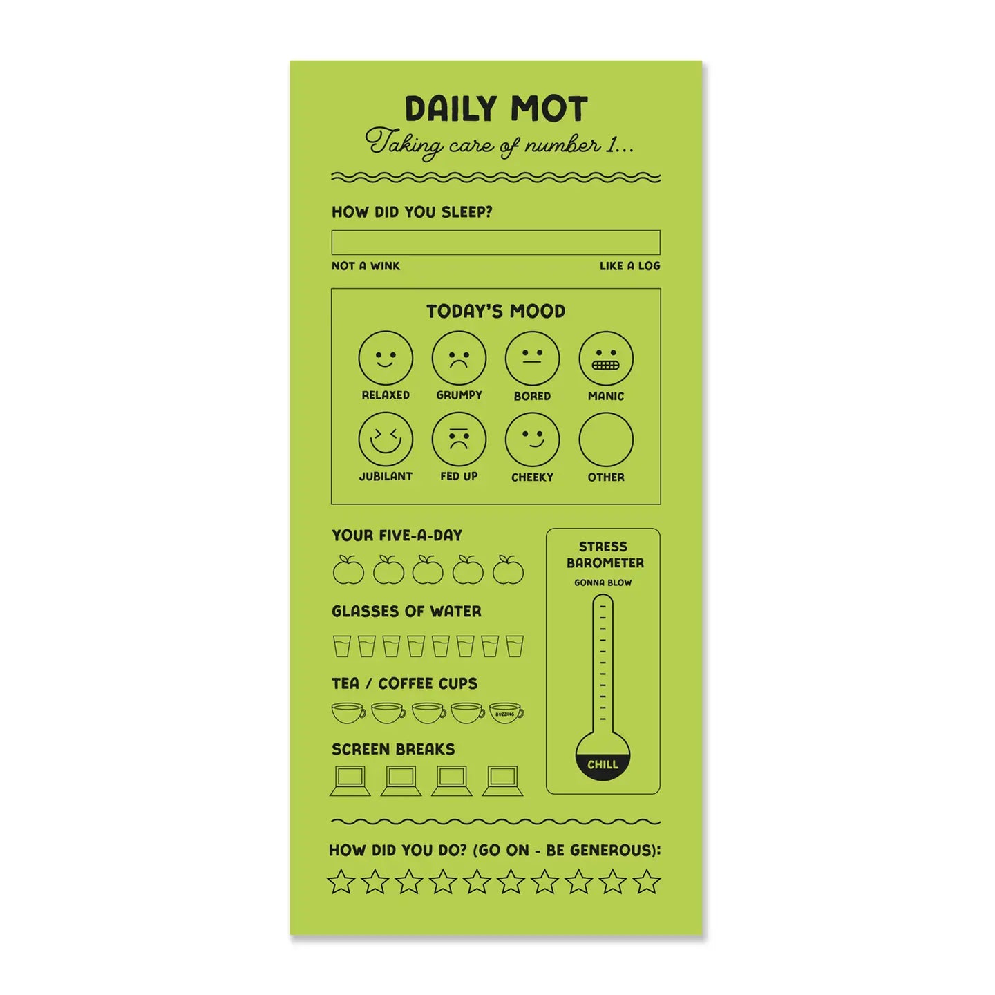 This planner pad is your new best friend! Keep on top of your mood, motivation and five-a-day with these handy reminders! This fun planner pad is a stylish addition to any desk space and makes a great gift for stationery lovers.