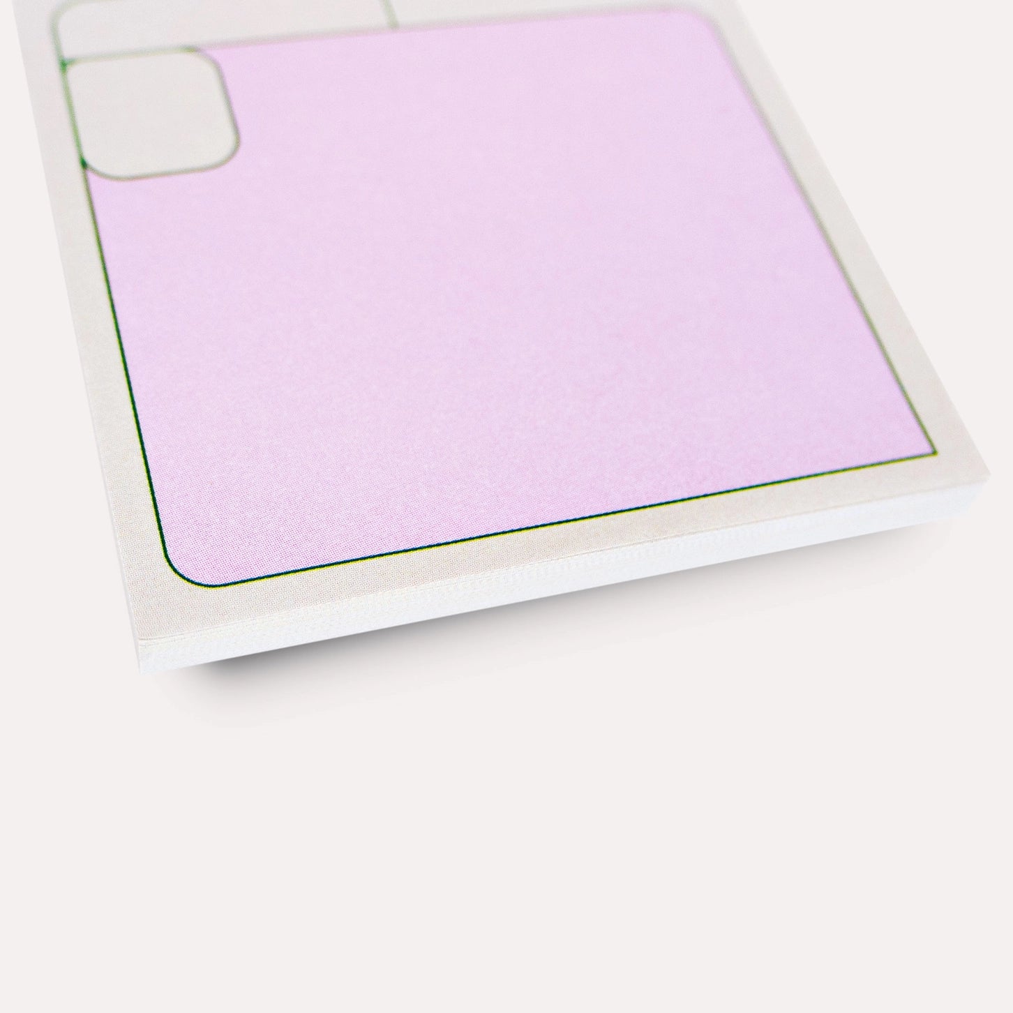 This is a pad of 50 sticky notes, measuring 7.1 x 7.1cms. They come packed in a biodegradable bag to ensure they arrive in pristine condition. They're made in the UK using 80gsm FSC certified paper.