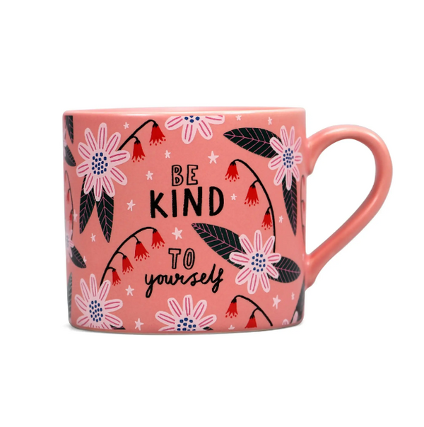 Made from stoneware, the design features a lovely botanical illustration and the phrase "Be Kind to Yourself".