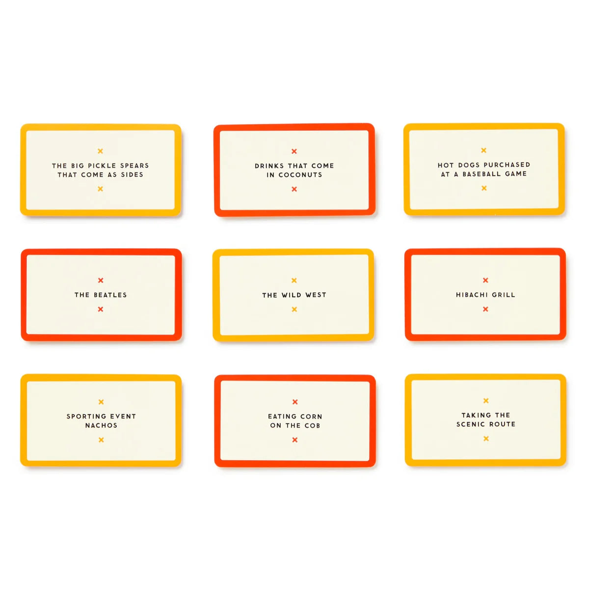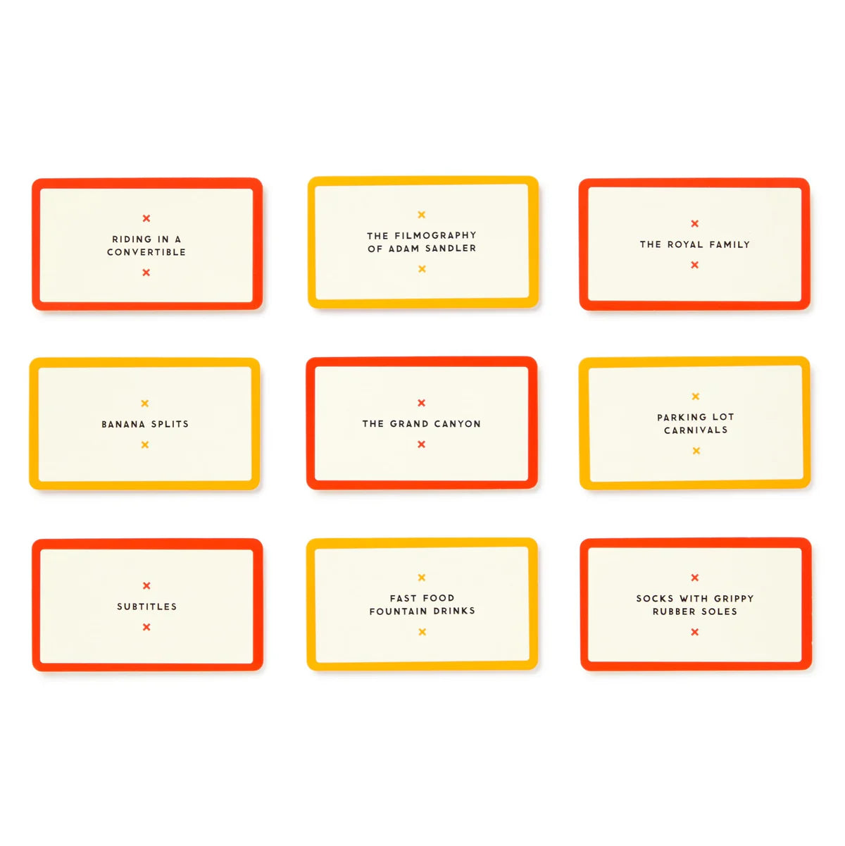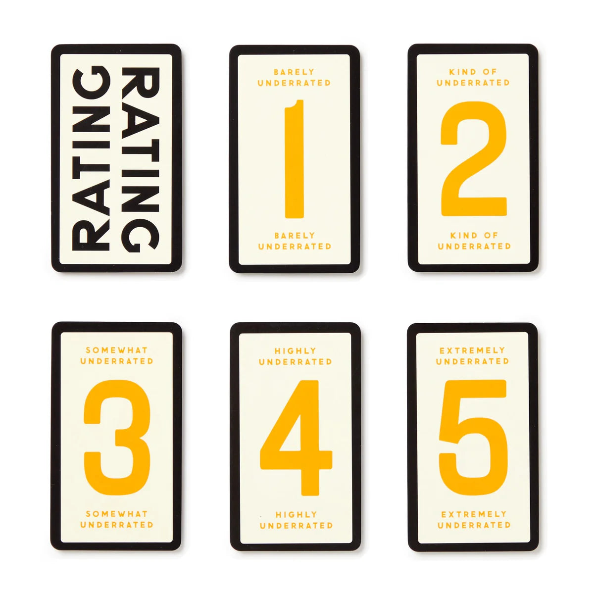 A game about how well you know your friends, and their horrible taste in pretty much everything. Inside you’ll find over 300 well-known (and entertaining) ‘things’ to weigh in on - from ‘non-alcoholic mixed drinks’ to ‘high school reunions’ and everything in between. You’ll win points for guessing just how under or overrated players think an item is – and then argue about how wrong they are. Includes 200 double-sided cards with 400 prompts like ‘The Beatles,‘ ‘Drinks that come in a Coconut,’ and ‘Avocado Toast.’